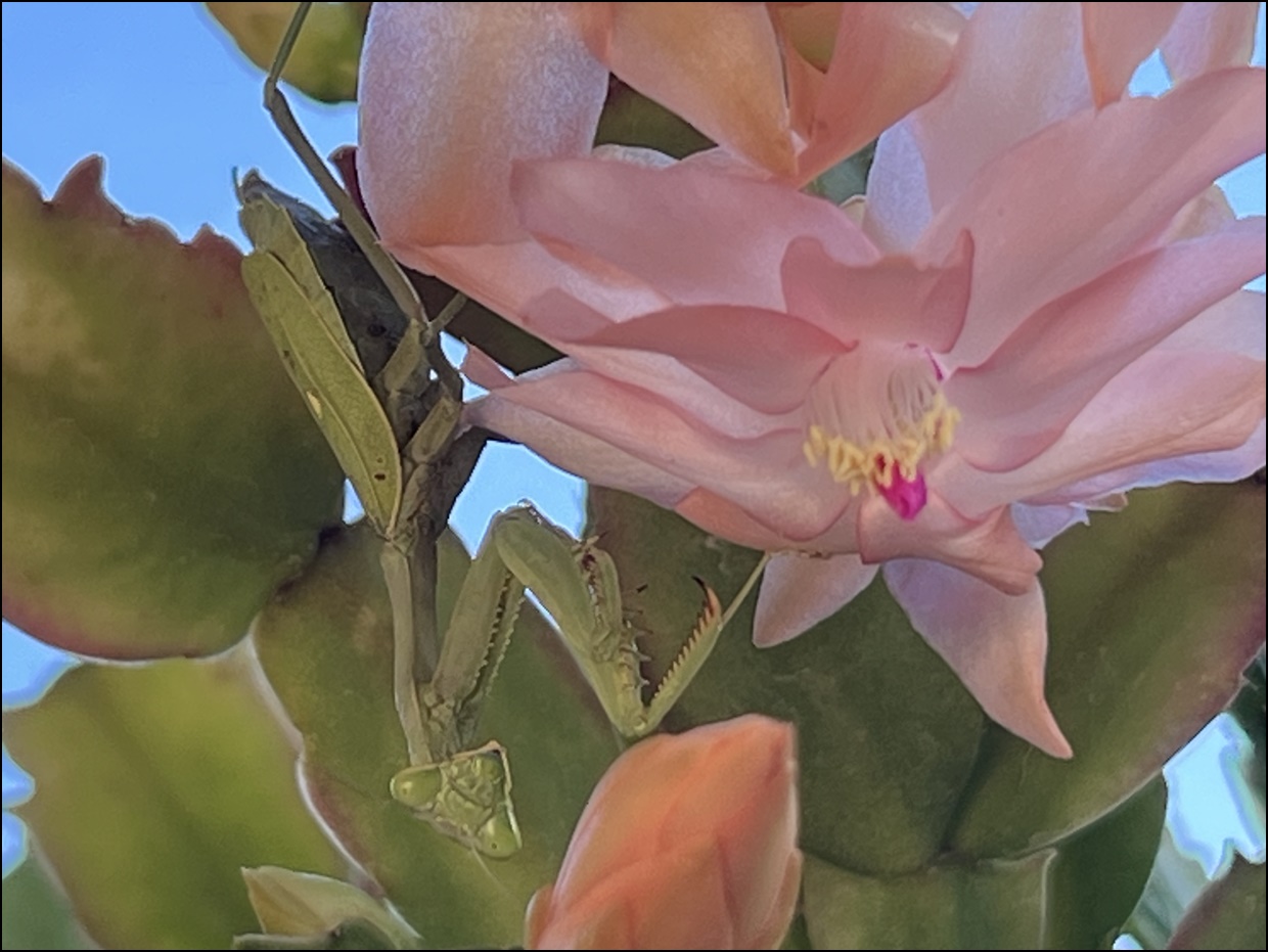 사마귀가 꽃에붙어 꼼짝도 안한다